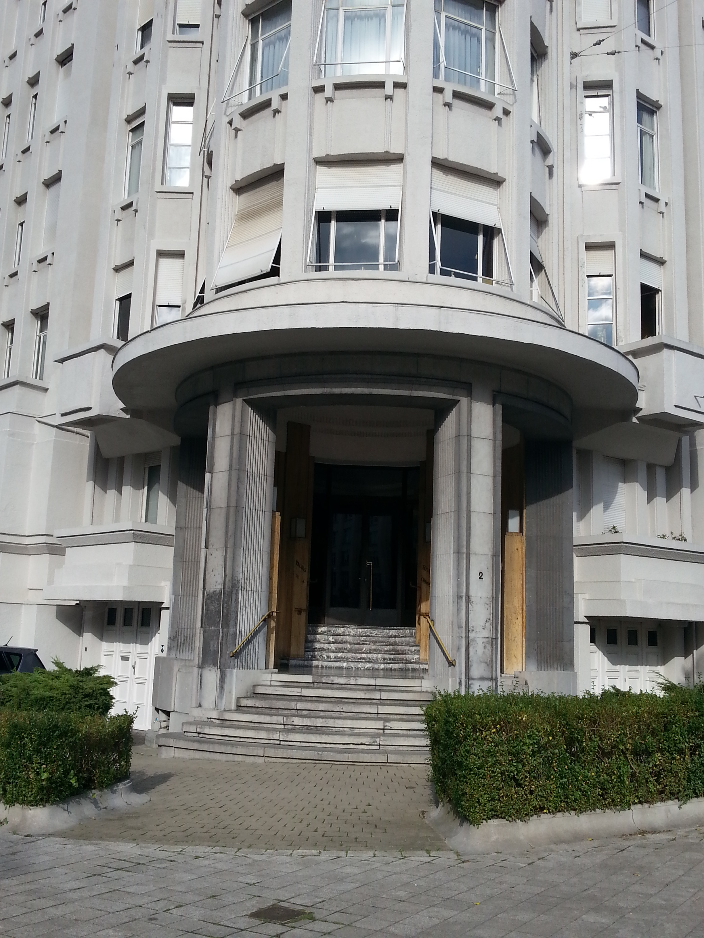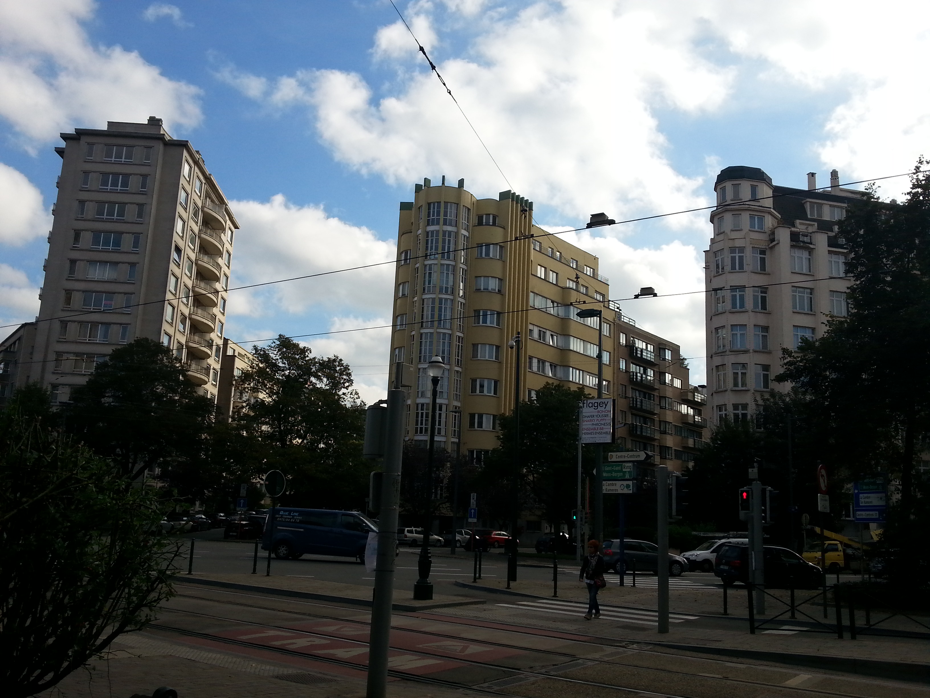 Diesmal haben wir uns Ixelles vorgenommen. Wir kommen von der Chaussee D’Ixelles/Elsensesteenweg (von der sichtlich schöne Seitenstraßen abgehen, hier befinden sich u.a. Häuser von Paul Hamesse, Henri Jacobs, Léon Delune) und gelangen zur Place Flagey. Dort sticht sofort das Art-Déco-Gebäude namens „Flagey“ ins Auge, welches den ganzen südlichen Teil einnimmt und früher Maison de la Radio hieß.