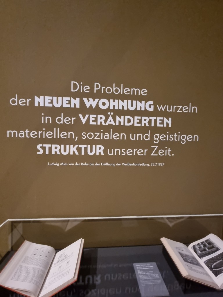 Und dann gab es die Bauausstellung des Deutschen Werkbundes in Stuttgart 1927, wo unter der Leitung von Mies van der Rohe die führenden Vertreter des Neuen Bauens (Le Corbusier, Walter Gropius, Hans Scharoun, Peter Behrens, Bruno Taut und weitere) 21 Wohnungen errichteten, die Weißenhofsiedlung.