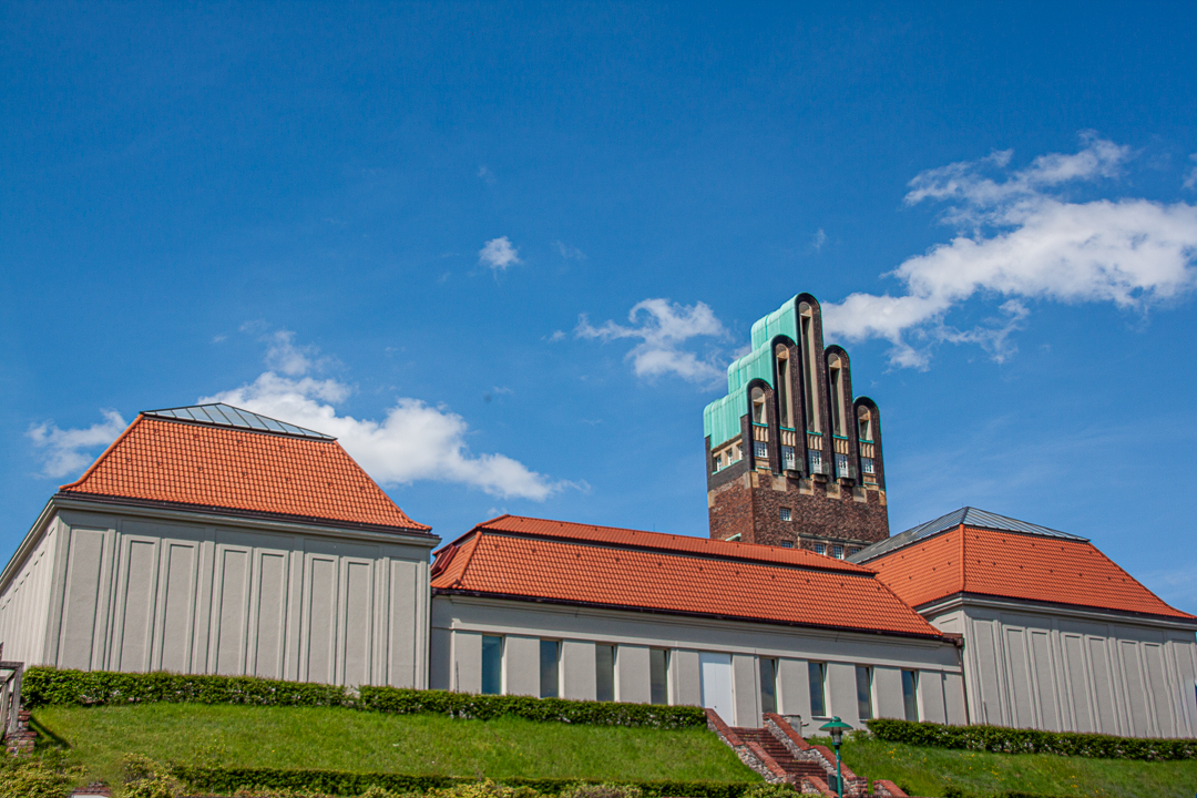 „Joseph Maria Olbrich war quasi der maßgebliche Architekt hier. Er wurde 1867 im österreichisch-schlesischen Troppau geboren und hatte in Wien das bedeutende Ausstellungsgebäude der Wiener Secession erbaut. (Die Wiener Secessionisten waren eine Gruppe junger Künstler um Gustav Klimt herum, die sich vom konservativen Künstlerhaus absetzen wollten und eine eigene Künstlervereinigung gründeten (lat. secedere: sich trennen, abspalten))