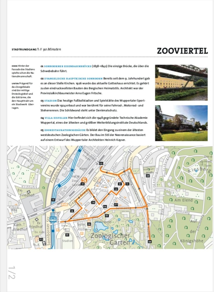Es ist schon ein paar Wochen her, da haben wir uns einen kleinen Teil davon vorgenommen, Elberfeld-West. Der Herzallerliebste hatte auf der Tourismus-Webseite eine Karte zum Download gefunden: Einen Spaziergang durch das Zooviertel, veranschlagte Zeit 90 Minuten.