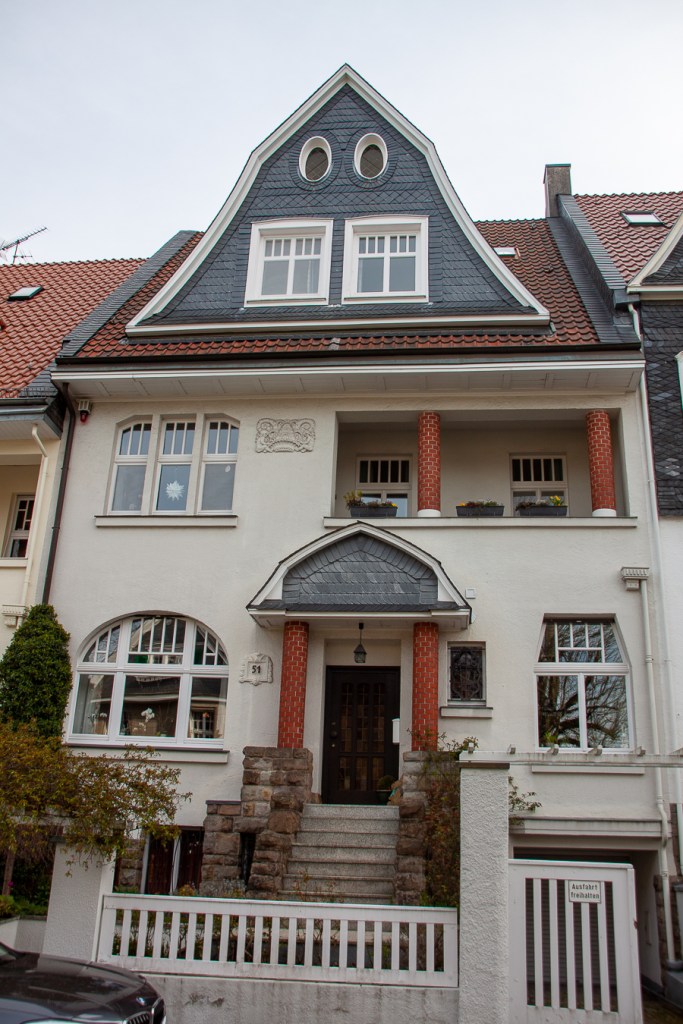 Das gesamte Zooviertel steht als Quartier unter Denkmalschutz und tatsächlich steht ein schönes Haus neben dem anderen. Wir finden hier Anklänge des Historistischen, des Jugendstils, der Moderne und des Bergischen Stils. Als besondere Highlights möchte ich folgende Häuser vorstellen: