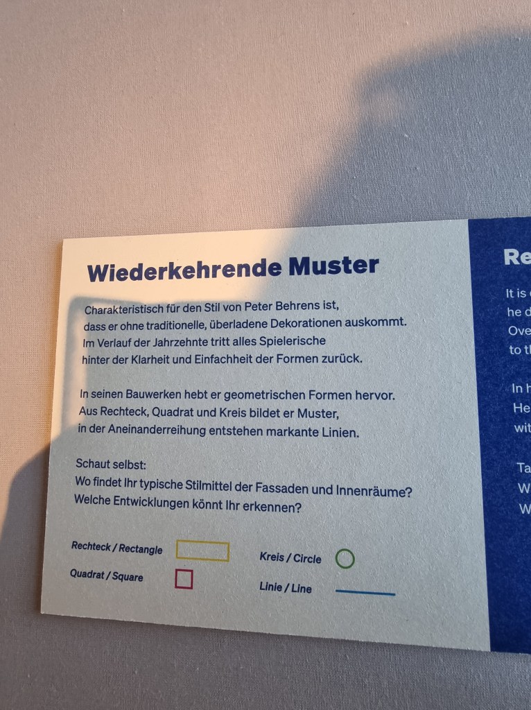 Früher nannte man Düsseldorf oft den „Schreibtisch des Ruhrgebiets“, da viele Verwaltungen Eisen und Stahl produzierender Betriebe des Ruhrgebiets hier ihren Sitz hatten. Tatsächlich passt diese Metapher eigentlich auch ganz gut zu den beiden Ausstellungen über Peter Behrens. 😀