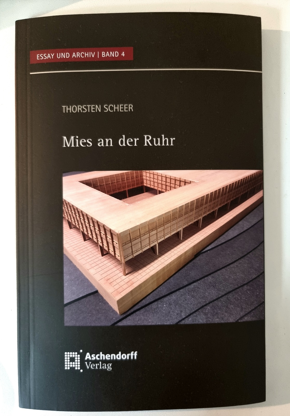 Als wir nach der Ausstellung im Kleinen Haus noch einmal ganz kurz in das Große Haus gehen, damit auch der Herzallerliebste mal um die riesige Untere Halle sieht, schlendert „Super Hubby“ instinktsicher und mit zielgenauer Treffsicherheit direkt zur Info-Theke, wo er tatsächlich ein kleines Buch mit dem Titel „Mies an der Ruhr“ findet. Grumpy Hubby ist ab sofort nicht mehr der grummeligste, sondern natürlich der beste aller Ehemänner. 😉