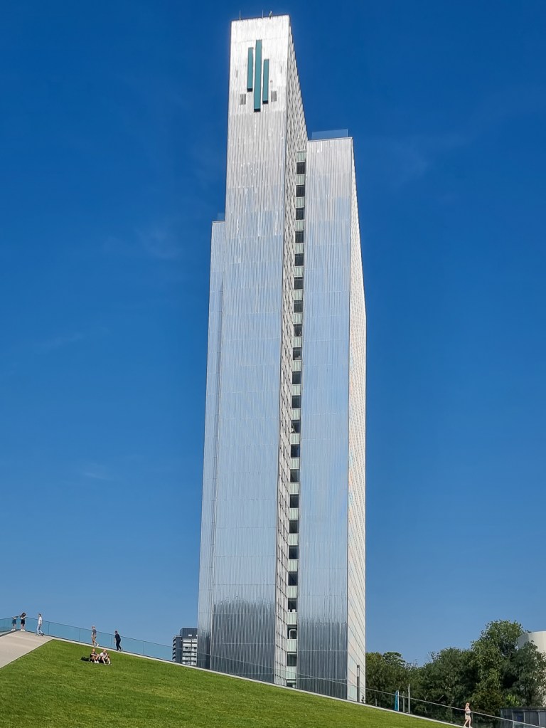 Gestern war wieder einmal der „Tag des offenen Denkmals“, eine wunderbare Gelegenheit, Häuser und Gebäude zu besichtigen, in die man sonst nicht ohne Weiteres hereinkommt. Ich hatte mir das Dreischeibenhaus in Düsseldorf ausgesucht, ein Gebäude, das allein schon wegen seiner Höhe (94 Meter) ins Auge sticht, aber natürlich noch mehr aufgrund seiner filigranen, Leichtigkeit ausstrahlenden Form! Dort konnte ich an einer tollen Führung teilnehmen.