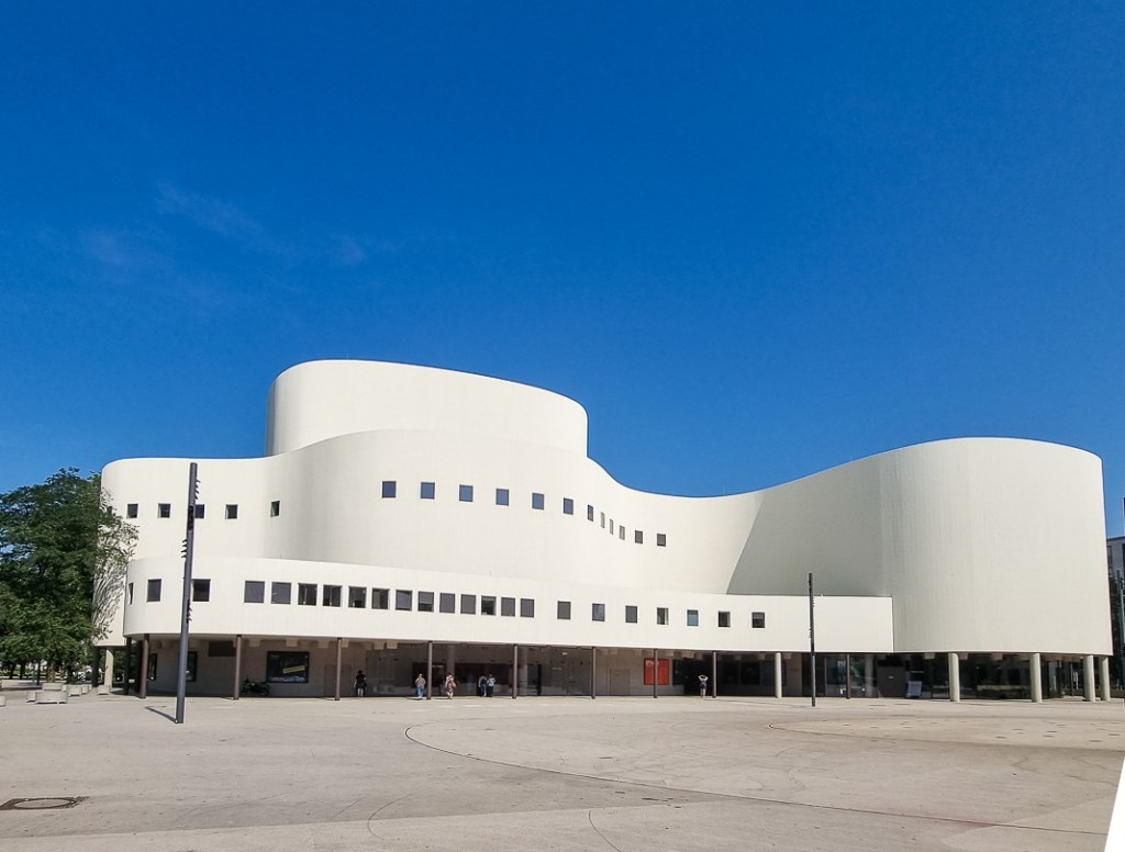Seitdem das Areal durch das städtebauliche Projekt namens „Kö-Bogen II“ erweitert wurde, tritt das Ensemble aus Schauspielhaus und Dreischeibenhaus noch mehr hervor. Die Sichtachse, die entlang der begrünten Fassade des Kö-Bogen II (Vorbild: Das New Yorker Lincoln Center) geht, lässt die beiden Gebäude erstrahlen. Fast so, als würden sie im Scheinwerferlicht auf einer Bühne stehen. 😉