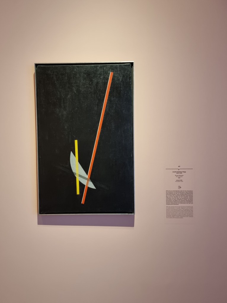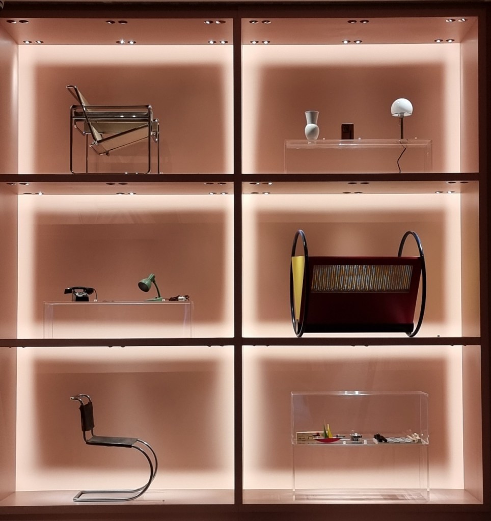 2. Für Bauhaus-Interessierte: Es gibt einen eigenen Saal mit wirklich schön ausgestellten Möbeln und Gebrauchsgegenständen wie z.B. meinen Lieblingsstuhl von Mies van der Rohe S533. Die Farbe dieses Raums (Lachsrot) passt übrigens wunderbar zu den Gegenständen und lässt ein Bild von László Moholy-Nagy erstrahlen. Wunderschön präsentierte Objekte!