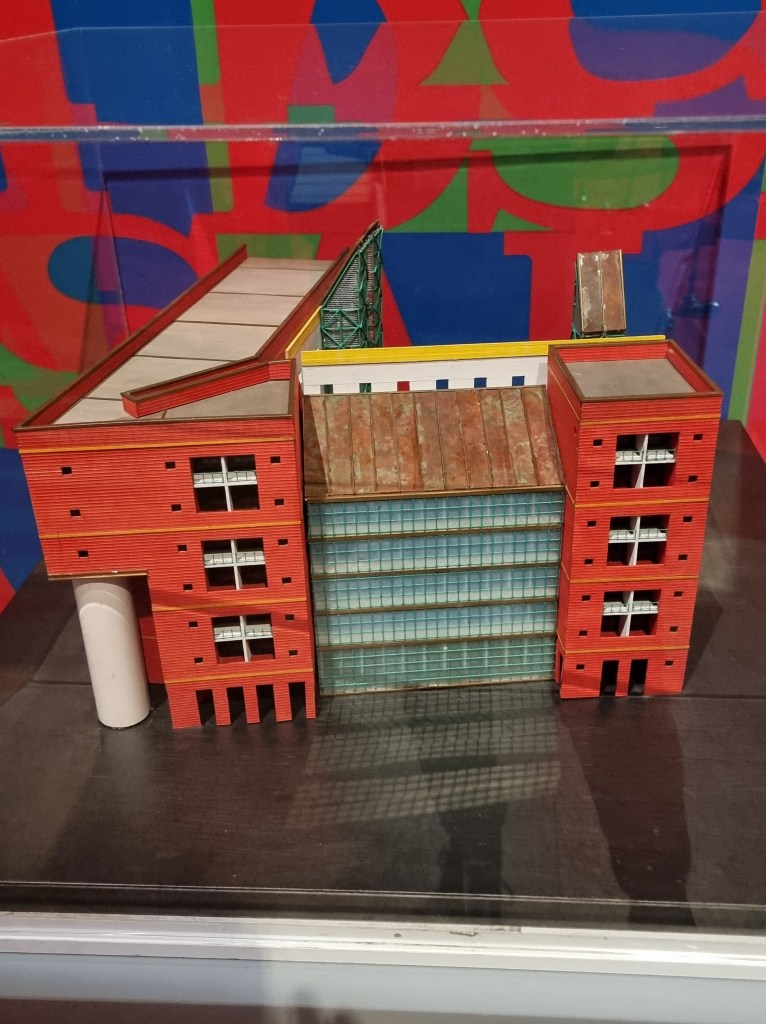 In der Ausstellung über die Postmoderne habe ich nun zum ersten Mal erfahren, dass die Moderne Ende der 1960er-Jahre als elitär abgelehnt wurde! Man wollte etwas Bodenständiges schaffen, das alle Stile und Epochen miteinander verband und „sowohl die Elite als auch den Mann auf der Straße ansprach“ (Ausstellungstext). Das Ergebnis war eine Art neuer Historismus, d.h. man griff auf alle Epochen und Stilrichtungen zurück und mixte sich etwas „Schönes“ zusammen. Kulturelle Aneignung pur sozusagen. Nun ja. Schön finde ich persönlich die Häuser, die damals entstanden, nicht wirklich. Ich bin ja auch ein Fan der Moderne und das, obwohl ich auch nur eine „Frau von der Straße “ bin. 😉