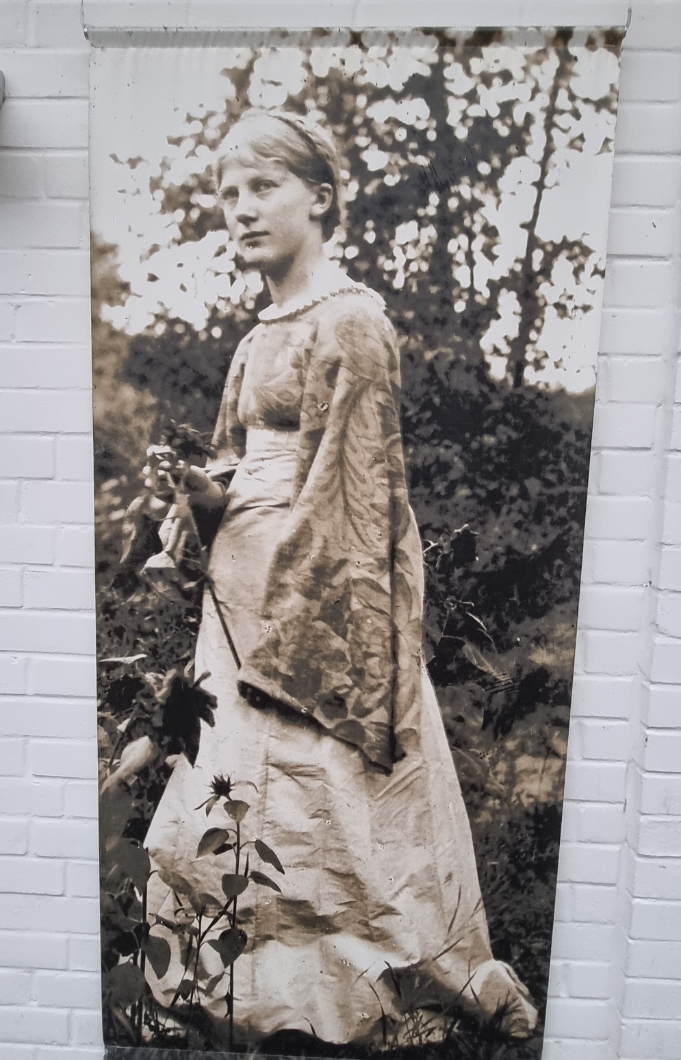 Die Frau, die auf zahlreichen Gemälden von ihm abgebildet sind, war seine eigene, nämlich Martha Vogeler, geborene Schröder (1879-1961). Er idealisierte sie auf seinen Bildern und stellte sie als „Femme fragile“ dar, als zartes, überweltliches Wesen. Und alles, was er rund um den Barkenhoff schuf, der Garten, der Umbau vom Bauernhof zum Gesamtkunstwerk, sollte dazu dienen, diese Idealwelt darzustellen. Auch seine Frau wollte er nach seinen Vorstellungen formen und schickte sie zum Gesangs- und Klavierunterricht nach Dresden, wo sie auf sein Geheiß hin das Handwerk des Webens erlernte. Er idealisierte sie so sehr, dass es zu Problemen in der Ehe kam. Seine Frau flüchtete in eine Affäre, die in Trennung von Vogeler und Heirat mit dem neuen Mann mündete. Das traumartige Wesen, das wir auf den Bildern sehen, war also in der Realität eine nicht wirklich von ihrem Mann gesehene Frau, die letztlich unglücklich war. Doch sie emanzipierte sich daraus und schuf ihr eigenes Werk. Sie baute das Haus im Schluh, das heute noch als Museum fungiert, errichtete dort eine Handweberei sowie ein Heimatmuseum und stellte dort frühe Gemälde von Heinrich Vogeler aus.