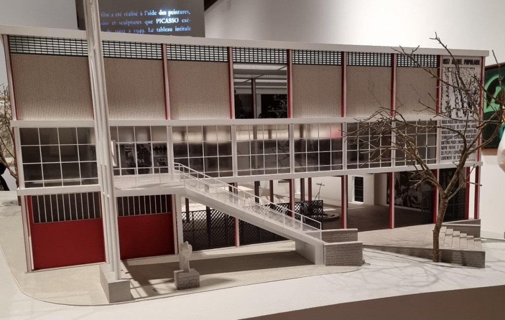 Während auf der Pariser Weltausstellung 1937 Deutschland und die Sowjetunion mit Prunkarchitektur protzten, fiel Spaniens Pavillon mit einer sehr modernen, klaren und offenen Architektur auf. Innen befanden sich u.a. Werke des Agitprop (steht für Agitation und Propaganda). Spanien befand sich zu der Zeit im Spanischen Bürgerkrieg (1936-1939), zu dem es durch einen Staatsstreich durch monarchistische und faschistische Militärs kam, die von Deutschland, Italien und Portugal unterstützt wurden. Joan Miró gestaltete eine Wandmalerei im Pavillon (Ein katalanischer Bauer im Aufstand) und Alberto Sánchez eine surrealistische Außenskulptur. Außerdem wurde Picassos berühmtes Gemälde Guernica ausgestellt.