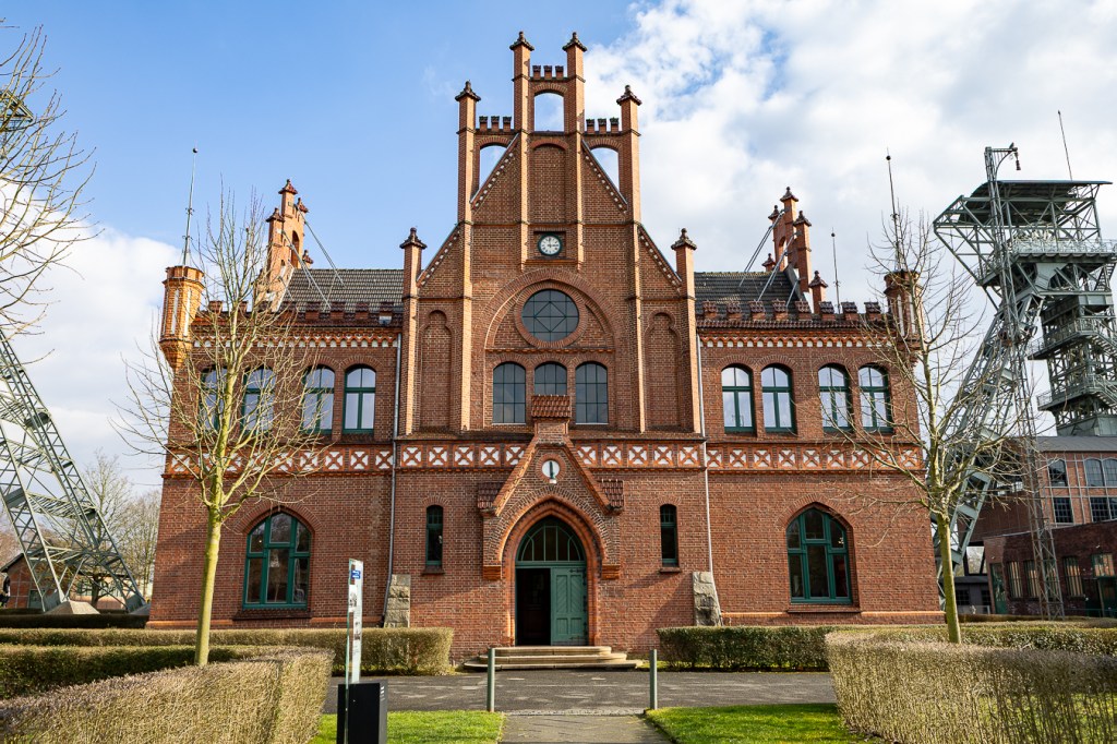 Das stillgelegte Steinkohlebergwerk entstand 1898 bis 1904 und gehört zu den schönsten Industriebauten Deutschlands. Die im Wesentlichen historistische Anlage wurde vom Architekten Paul Knobbe (1867-1956) entworfen. Er verzierte die Fassaden mit beeindruckenden neugotischen Staffelgiebeln und gestaltete eine dreiflügelige Anlage, die eher an ein Schloss als an ein Industriegelände erinnert. Die damaligen konkurrierenden Bergbaugesellschaften wollten ihre Führungsposition, ihren Erfolg und ihre Macht durch besonders herausragende Zechen-Architektur demonstrieren. Die roten Ziegelsteine erinnern an die norddeutsche Backsteingotik.