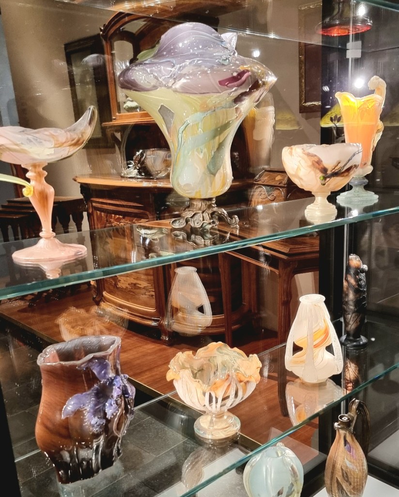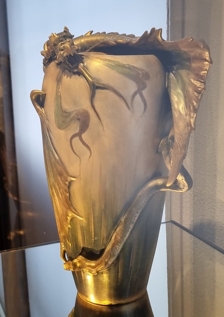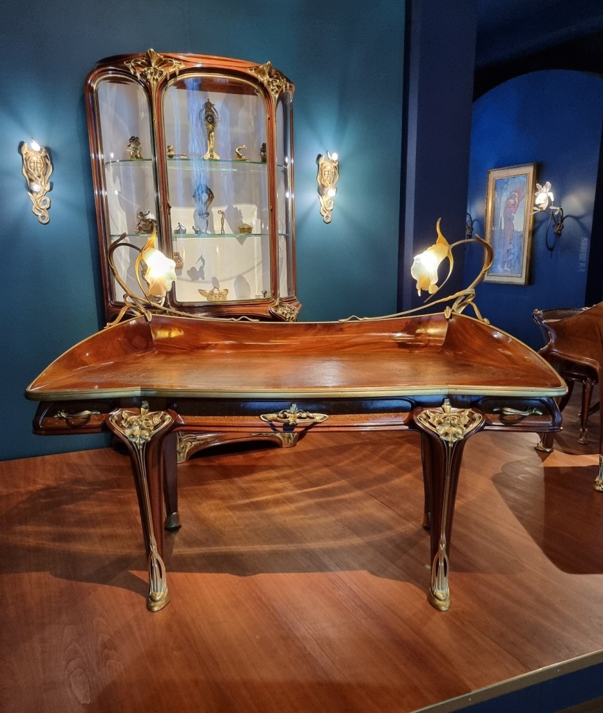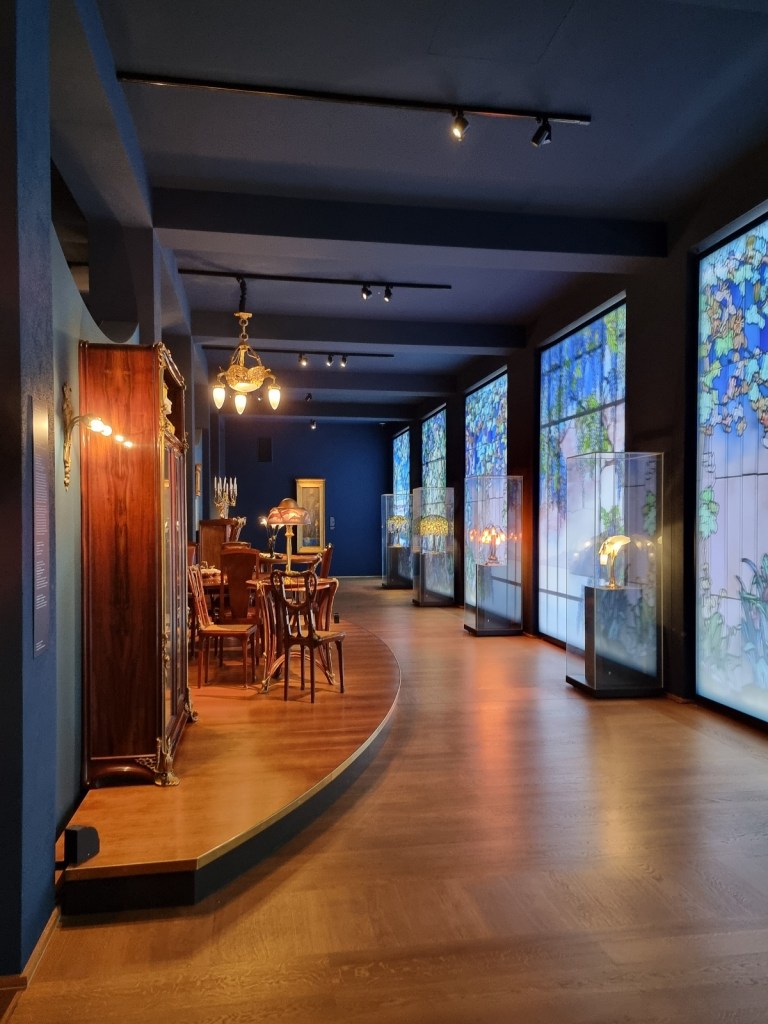 Allen, die sich für den Jugendstil begeistern, kann ich einen Besuch nur wärmstens empfehlen. Hier findet man sämtliche Stilrichtungen, und sie werden auf besonders ansprechende Weise präsentiert – mit dunklen Hintergründen, die die Holz- und Objektfarben eindrucksvoll zur Geltung bringen.