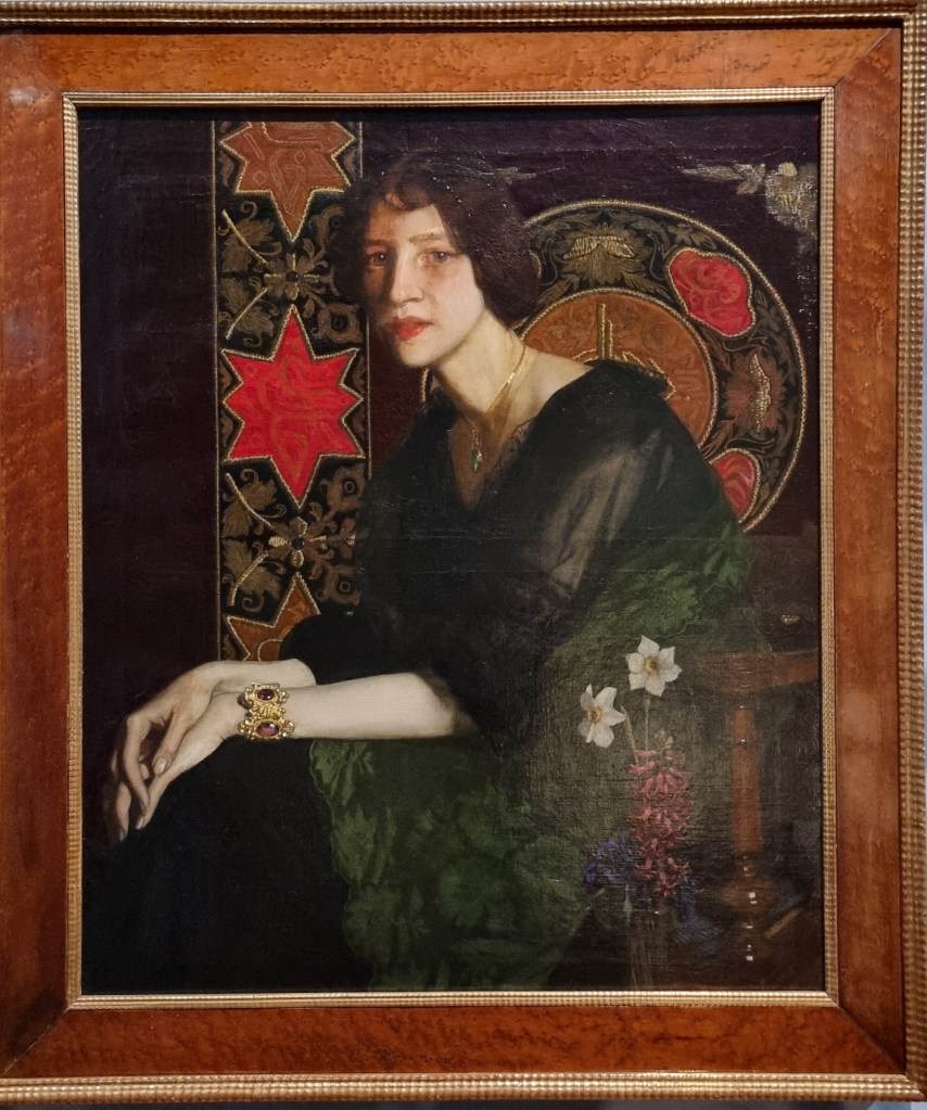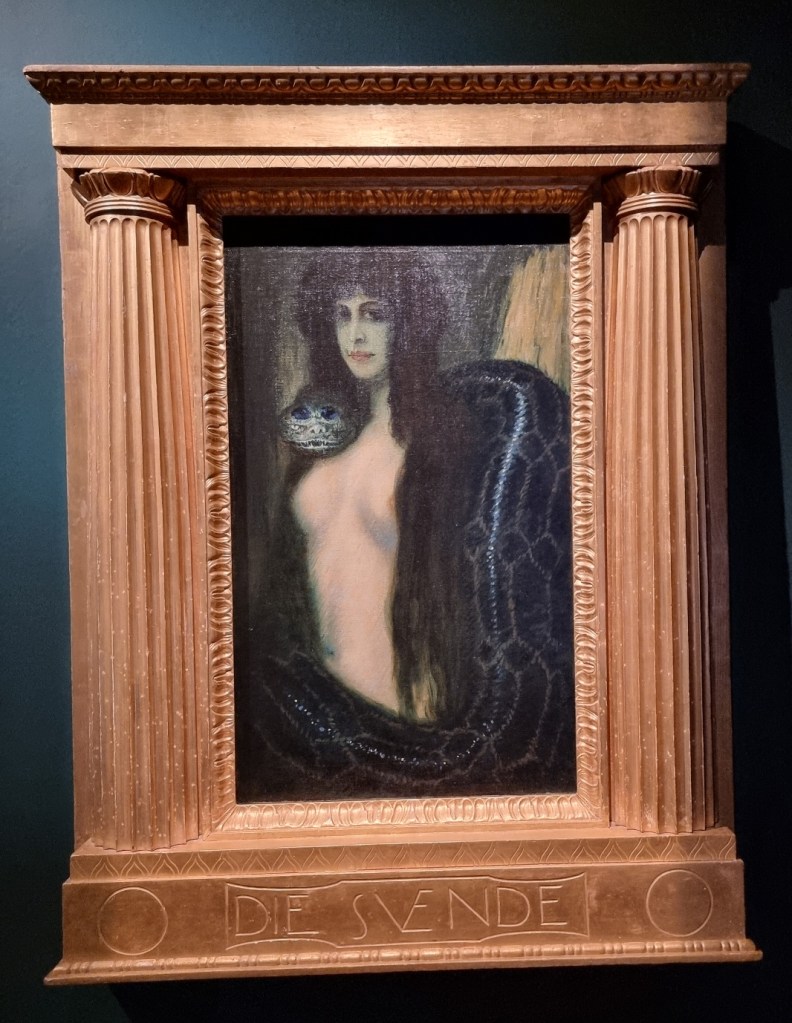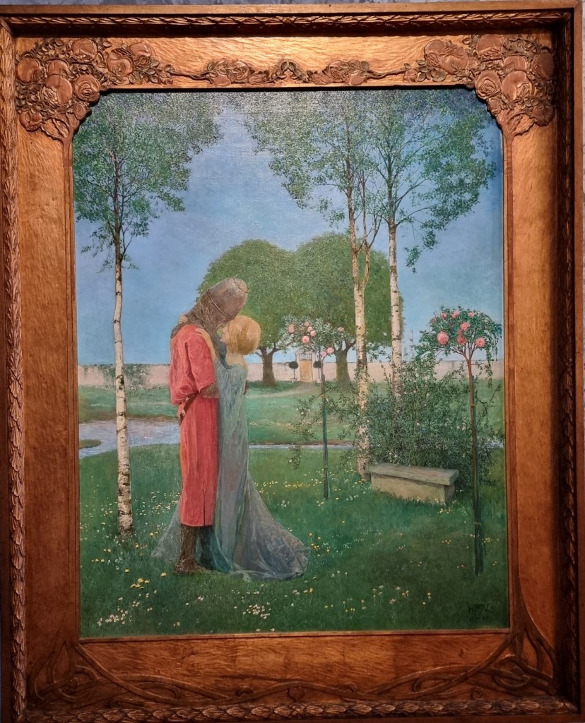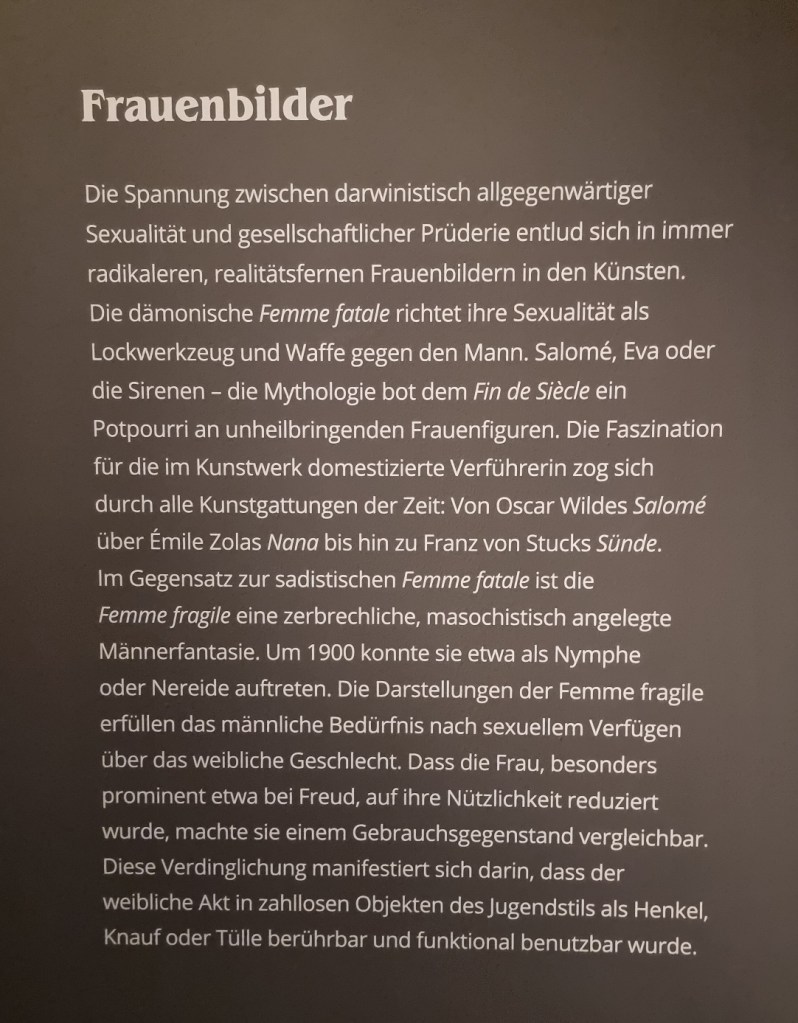 Kurz gesagt: Ein Traum! Das Einzige, was mir in dieser konzentrierten Form tatsächlich ein klein wenig zu viel wurde, waren die unzähligen Frauendarstellungen – ob als „Femme fatale“ oder „Femme fragile“. Schon in einem früheren Artikel habe ich mich gefragt, ob man die idealisierten Frauenfiguren, wie sie zum Beispiel Heinrich Vogeler zeigt, heute eigentlich noch genauso bewundern kann. In Wiesbaden wird dazu Folgendes erläutert: