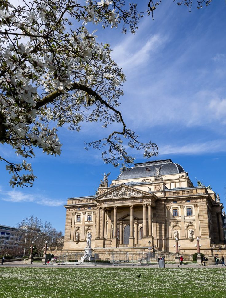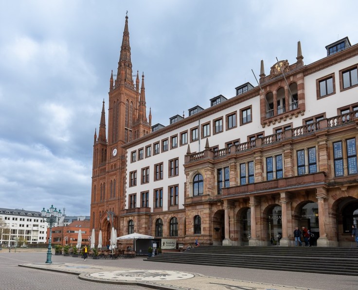 Auch ein Besuch der Stadt Wiesbaden lohnt sich übrigens sehr! Die Innenstadt wurde größtenteils in der Zeit zwischen 1850 und dem Ersten Weltkrieg errichtet, das heißt, hier sind besonders viele Bauten des Historismus zu sehen, oft mit prachtvollem Jugendstil-Dekor. Besonders bemerkenswert ist, dass verhältnismäßig wenige Gebäude während des Zweiten Weltkriegs zerstört wurden – nur etwa 30 Prozent der Innenstadt fielen den Bomben zum Opfer. Das ist außergewöhnlich wenig. Zum Vergleich: In Köln lag die Zerstörungsquote bei 70 Prozent.