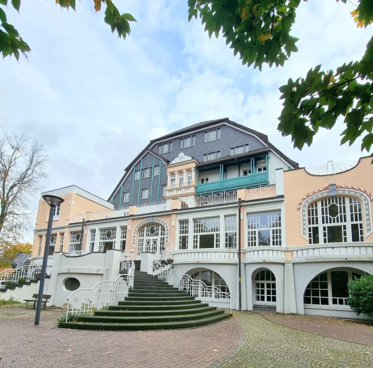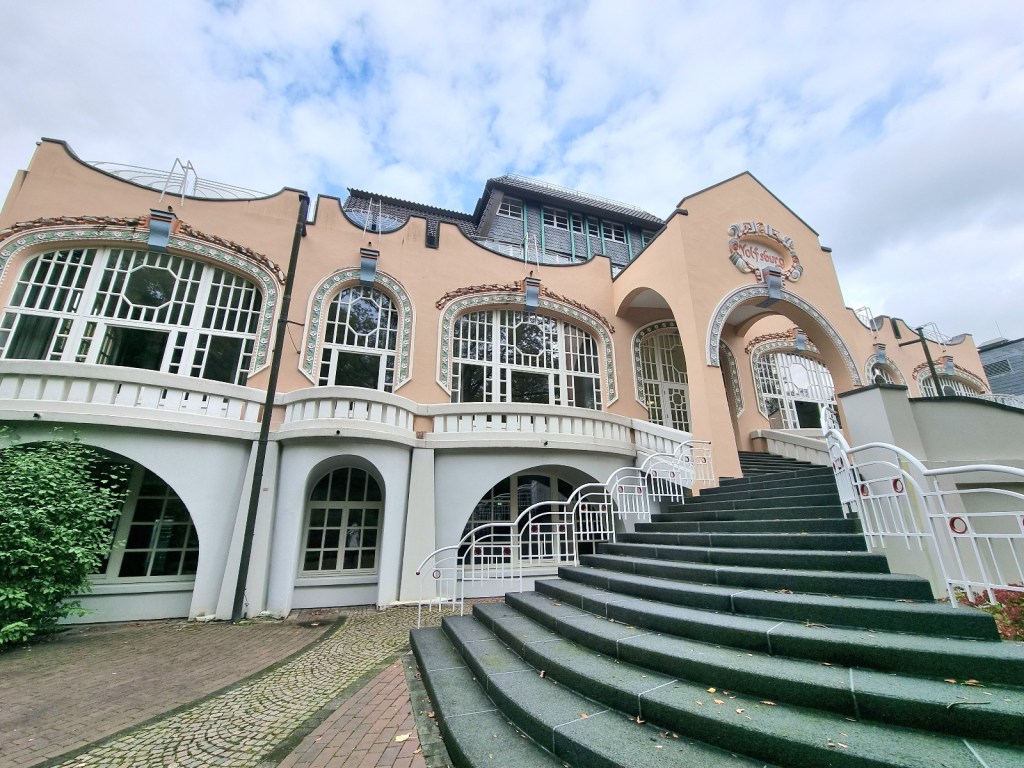 Ich finde es auf jeden Fall toll, dass eins der Häuser, nämlich die Wolfsburg, damals wie heute für die Allgemeinheit zugänglich ist. Und dass vom ursprünglichen Gebäude zumindest die Fassaden an der West- und an der Südseite weitestgehend erhalten werden konnten (ein altes Bild von der Wolfsburg findet man hier). So können wir uns heute noch an den kreativen Ideen und dem Anblick erfreuen, den die Menschen vor gut 120 Jahren erschaffen haben. Und uns vorstellen, wie die Kinder damals mit dem Esel ankamen, wie getanzt wurde und vermutlich eine heitere und ausgelassene Stimmung herrschte. Da passt doch die Verspieltheit des Jugendstils ganz gut, oder? 🙂
