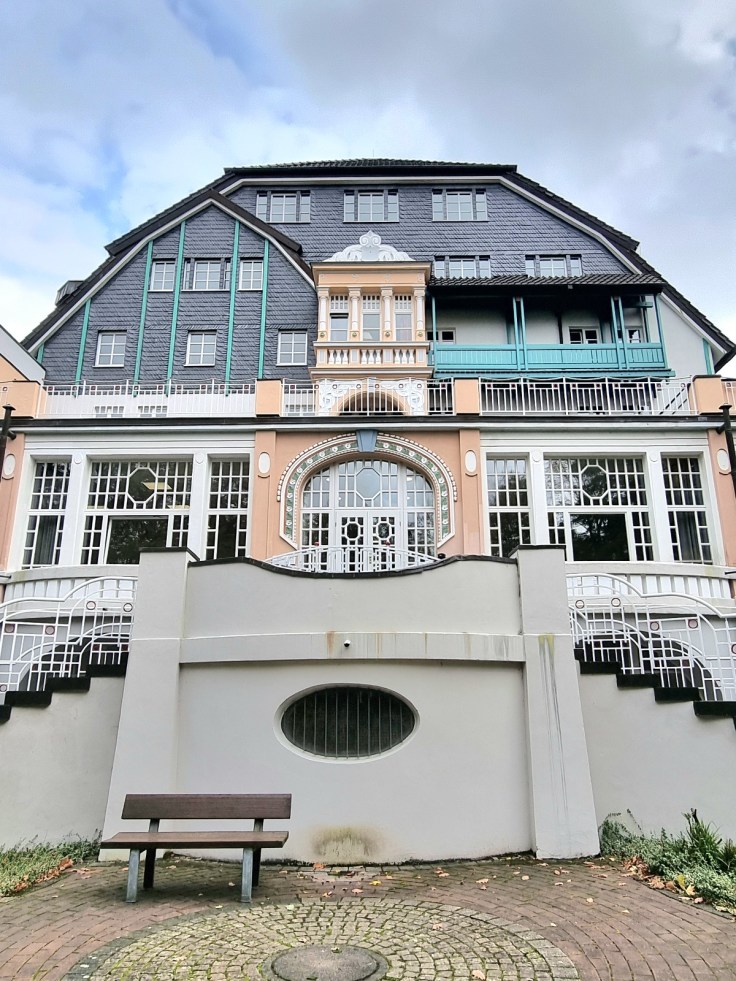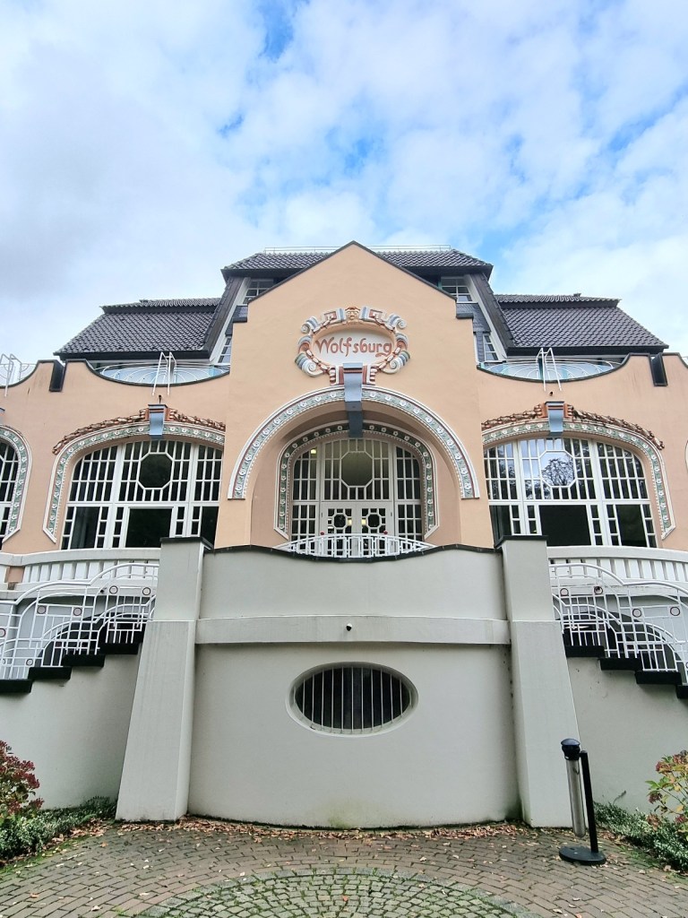 Wow, denke ich als ich um die Ecke biege und reibe mir verwundert die Augen. Da ist doch definitiv Jugendstil mit dabei! Das hätte ich nicht erwartet. Ob er mich extra hierher geschickt und die „Wolfsburg“ als Überraschung geplant hat?