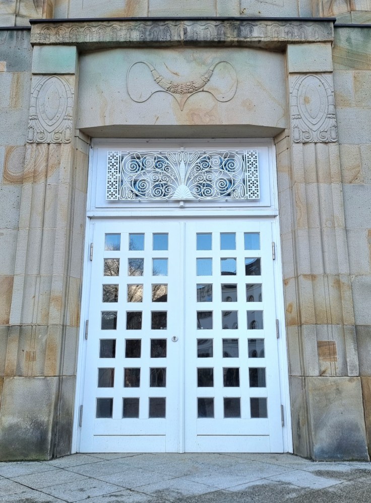 Zu erwähnen ist noch, dass das Theater nach dem Zweiten Weltkrieg wieder aufgebaut und durch moderne An- und Umbauten ergänzt wurde (leider kein Foto). Auf dieser Webseite habe ich ein Postkarten-Bild vom ursprünglichen Gebäude gefunden. Wenn man den Pfeil in der Mitte verschiebt, kann man die Veränderung – insbesondere der Türen – zwischen 1900 und 2016 direkt sehen.