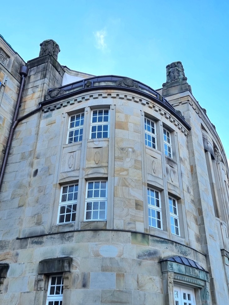 Spuren des Jugendstils finden sich überall. So auch in der netten Stadt Osnabrück in Niedersachsen, der ich vor kurzem aufgrund eines Konzerts einen Mini-Besuch abstattete. Da ich nur ein paar Stunden Zeit hatte, hatte ich vorher recherchiert, ob es dort ein Jugendstil-Gebäude zu sehen gibt. Und siehe da: Die Fassade des Theaters am Domhof wird als Jugendstil eingeordnet.