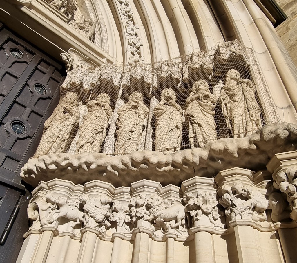 Das Eingangsportal auf der Südseite wird „Brautportal“ genannt und war ziemlich beeindruckend, denn es wird von zahlreichen Figuren geschmückt, von denen einige die klugen und die törichten Jungfrauen darstellen (ein Gleichnis aus der Bibel).