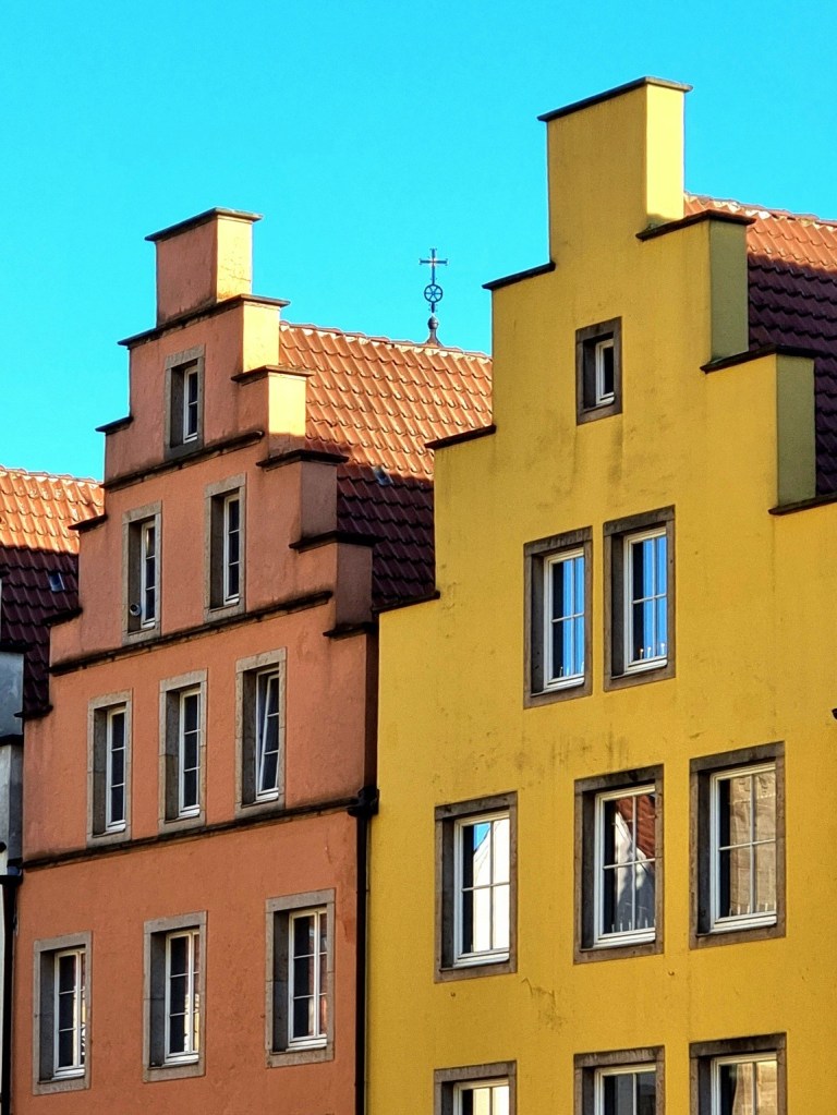 Es ist bestimmt kein Zufall, dass drei Menschen aus meinem näheren Umfeld ihr Studium vor vielen Jahren in Osnabrück angefangen haben, ist es doch für diesen Zweck ein absolut passender und schöner Ort. Mit einer übersichtlichen Größe (166.000 Einwohner) und einer tollen historischen Altstadt kann es natürlich punkten bei jungen Leuten, die zum ersten Mal die Familie verlassen und ihren Weg ins Leben suchen. Entstanden im Frühmittelalter um den Bischofssitz herum (ca. im Jahr 780) und später als Hansestadt (1412 erstmalige Teilnahme an einem Hansetag) findet sich dort die ganze Variation an Architektur, die es so gibt: Fachwerkhäuser, spätgotische Bauwerke, Gebäude des Klassizismus und so weiter und so fort.