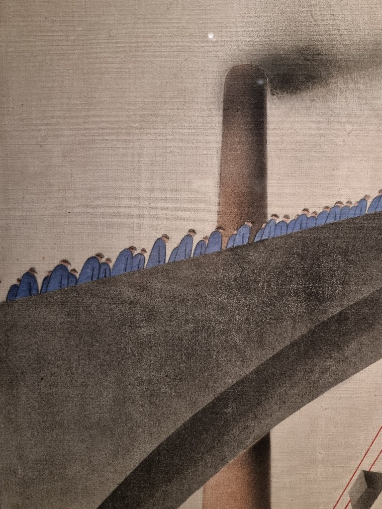 Wie Künstlerinnen und Künstler damals damit umgingen, wie sie die neuen Fabriklandschaften in ihren Bildern darstellten, auf soziale Missstände aufmerksam machten und neue Berufsgruppen in die Malerei Eingang fanden, lässt sich noch für ein paar Tage in der sehenswerten Ausstellung im LVR-Landesmuseum in Bonn (direkt hinterm Hauptbahnhof) erfahren. Besonders gefallen haben uns bei unserem Besuch am Karfreitag die interaktiven Angebote, die einen Bogen vom Gestern ins Heute schlugen.